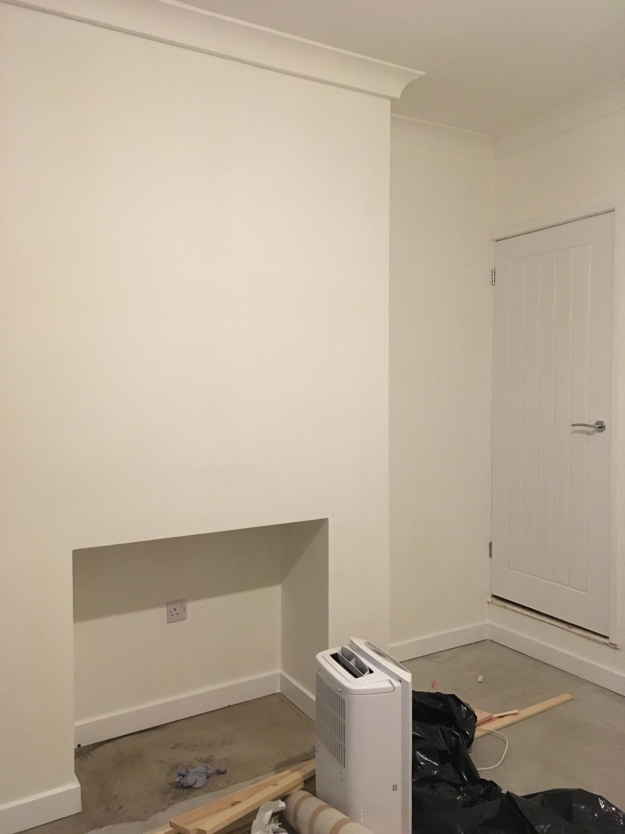 The property was a mid terraced property showing rising damp on both the external and party walls and concrete flooring. Drilled and injected joints with damp proofing cream, fixed plastic membrane and dot and dabbed and plastered the walls with full decoration. Flooring had epoxy resin applied and a floor levelling compound